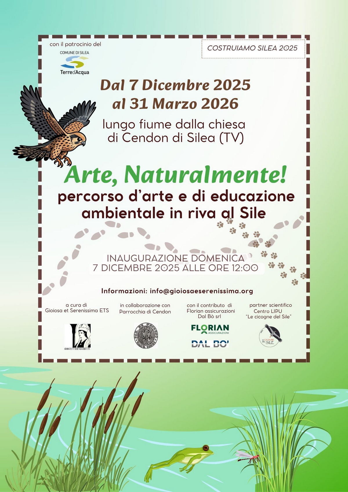 Dal 7 dicembre 2025 al 31 marzo 2026, l’associazione Gioiosa et Serenissima presenta “Arte, naturalmente”, un percorso d’arte e di educazione ambientale lungo il fiume Sile.