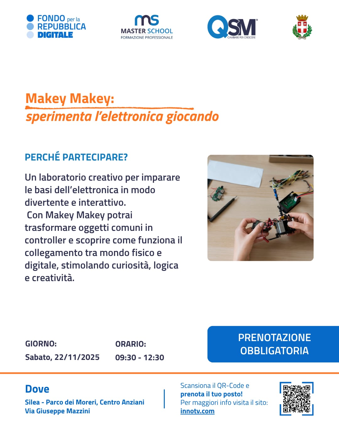 Laboratorio creativo per imparare ale basi dell'elettronica in modo divertente e interattivo: sabato 22 novembre 2025 dalle ore 9.30 alle 12.30 Centro Anziani Parco dei Moreri.